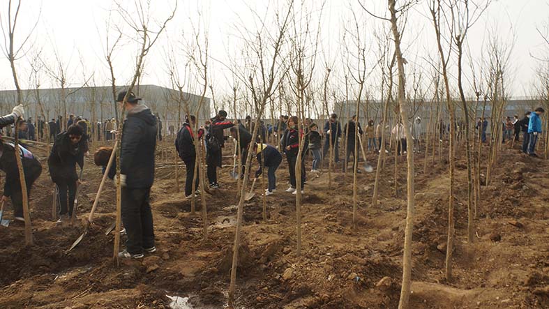 全體參加植樹活動的員工準(zhǔn)時到位,在結(jié)束了短暫的人員組隊,劃分區(qū)域和領(lǐng)取工具等準(zhǔn)備工作后,迅速的投入到植樹活動當(dāng)中。各小組成員分工明確,積極踴躍。很多隊伍在組長的帶領(lǐng)下,領(lǐng)樹苗、放樹苗、填土、培土、澆水相互配合,干得熱火朝天。許多小組高效率高質(zhì)量的完成本隊植樹任務(wù)后,迅速投入到其他隊伍中,互幫互助。在全體員工有組織有紀(jì)律的高效協(xié)作的前提下,在不到兩個半小時的時間內(nèi),共計完成1800棵樹苗的栽種工作,綠化面積達(dá)12000多平方米。此次植樹活動,進一步改善了控感廠區(qū)的生產(chǎn)環(huán)境,把原本空曠的廠區(qū)西南角的一片空地裝點得煥然一新!
