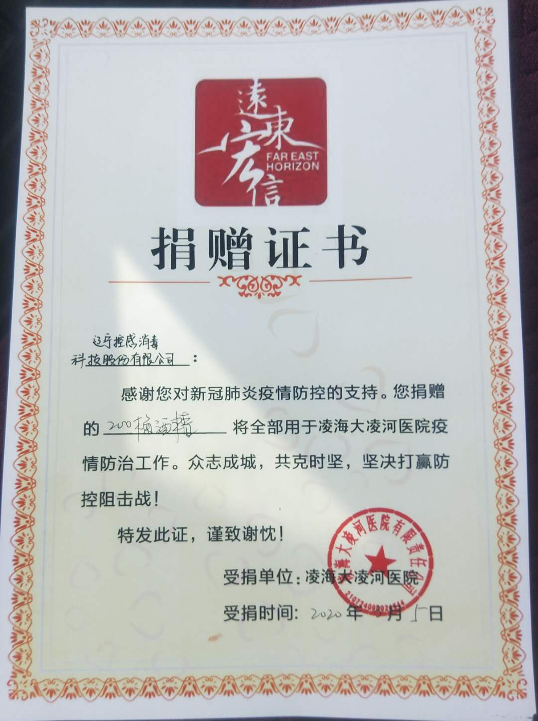 3月2日,3月5日公司向錦州市傳染病醫(yī)院和凌海大凌河醫(yī)院捐獻(xiàn)賑災(zāi)物資,以用于支持新型冠狀病毒肺炎疫情的防控。